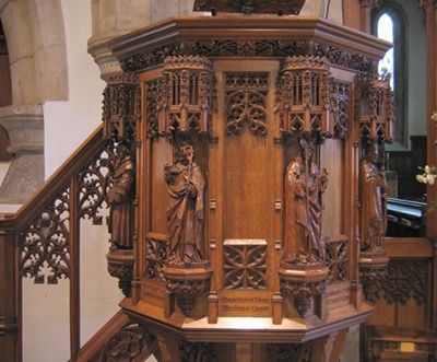 The pulpit at Rothbury All Saints Church